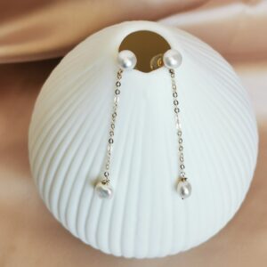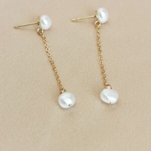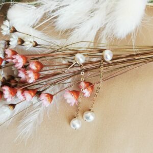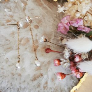 ▶4 petites perles d’eau douce de forme et taille différente. 2 perles sont montées sur un clou en gold filled de 0.32mm diamètre ou 28 gauge en gold filled