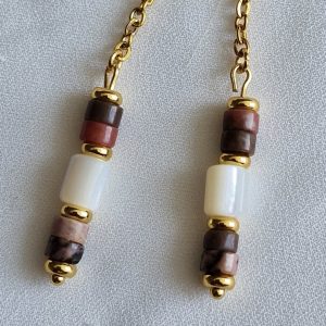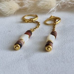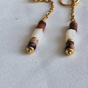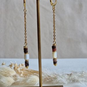Boucles d’oreilles pendantes avec perles heishi rhodonite
